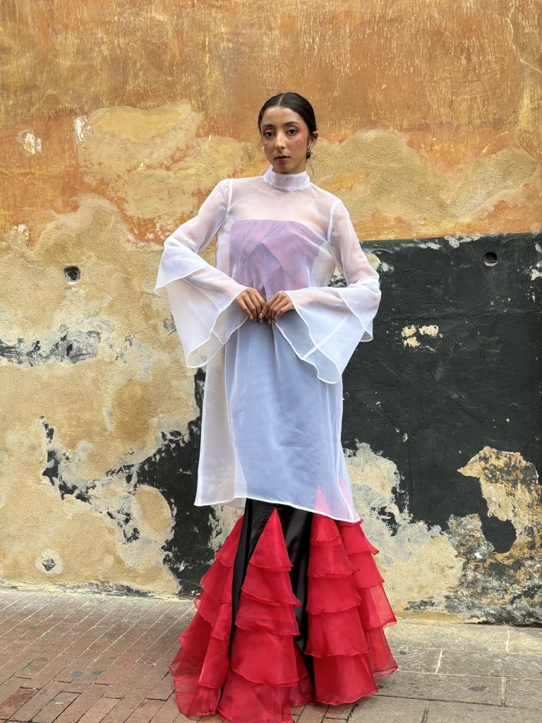 Esta colección de indumentaria femenina de gala refleja la metáfora del embalsamamiento como una forma de esconder lo que se considera negativo tras múltiples capas. Inspirada en la historia de la violencia en Colombia, donde el gobierno ha intentado silenciar a los marginados, cada prenda cuenta la lucha de quienes buscan alzar la voz y mostrar la resiliencia que persiste tras la opresión.